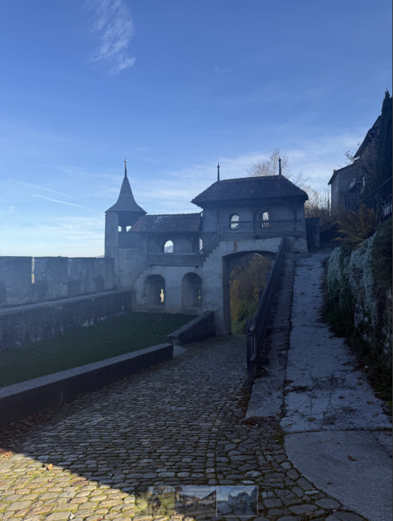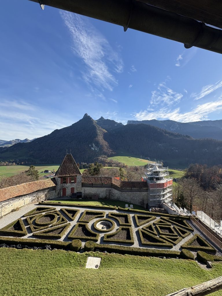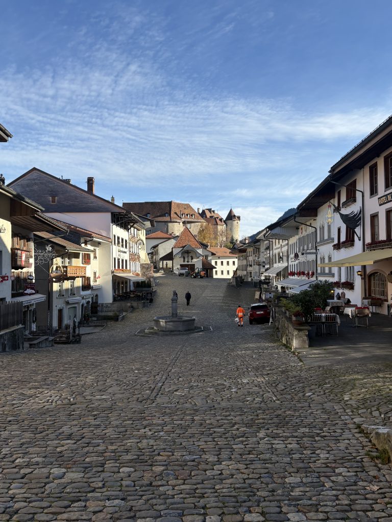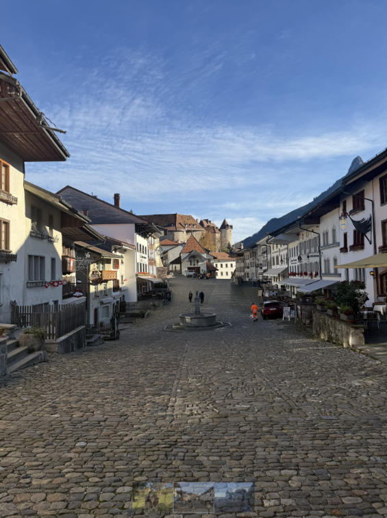 We started our day bright and early at 8 am to get in the van and head to the town of Gruyères, a small medieval town nestled in the Pre-Alp mountains. With an hour to explore, we found several small boutiques/gift shops, cafes, a castle, and even cows! The town has managed to preserve a lot of history, as we found what seems to be a fortress untouched at the edge of town. While the town is named after the famous cheese, Gruyère, it wasn’t advertised or even really prevalent in any of the shops that we visited, which I found interesting.