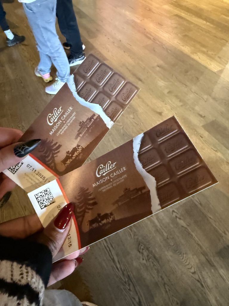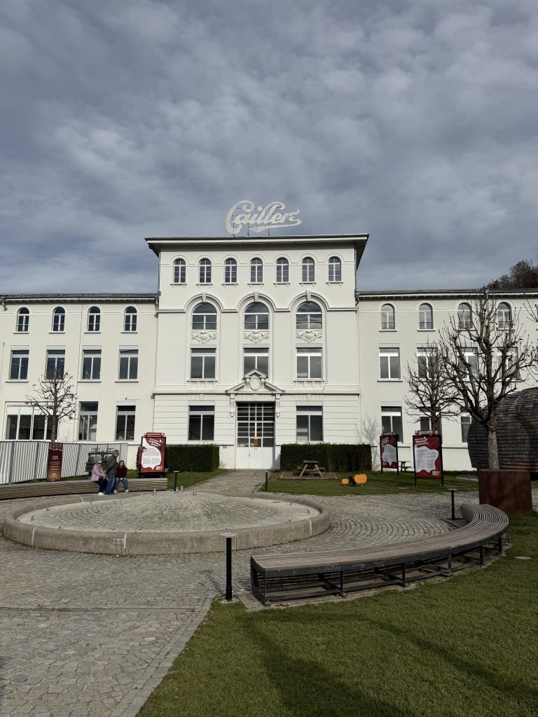 Twenty minutes later, we arrived at the Maison Cailler awaiting our next tour and taste testing experience. Our group was led through different rooms recounting (through audio) and demonstrating (with animatronics) the history leading up to the success of Cailler and Swiss chocolate making. There was so much to learn, from how chocolate became popular, to the stories of the people who grow and farm the cocoa beans, to how the chocolate is actually made from cocoa beans to a packaged product. Thankfully, we also had the opportunity to see chocolate being made from start to finish, as well as taste test their most popular chocolates. After learning about the history and tasting for ourselves, we made our way to the gift shop where we ended our experience at Maison Cailler.